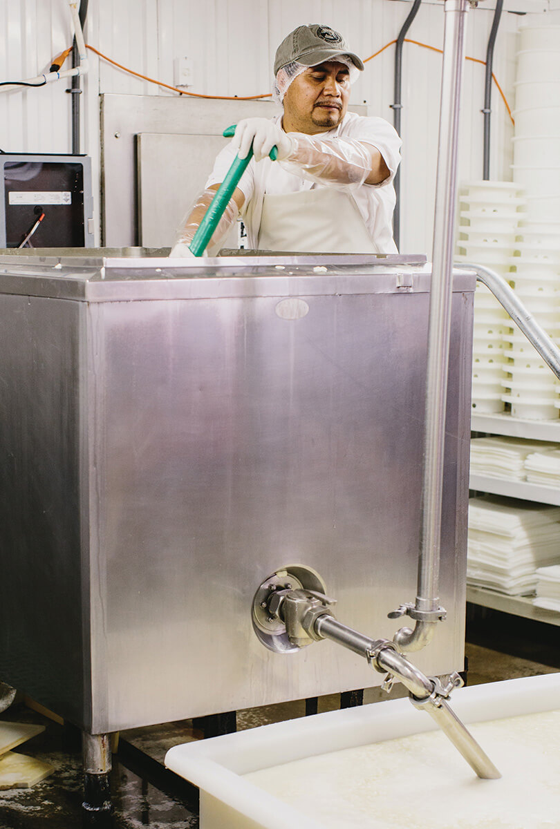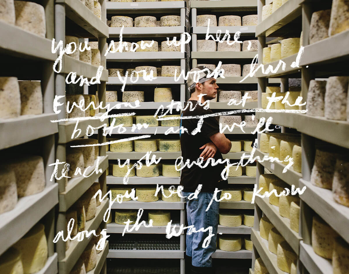 “Nobody really starts out here with any experience,” Gabe explained as he walked us around the cheesemaking facilities. “It’s a different environment. You show up here, and you work hard. Everyone starts at the bottom, and we’ll teach you everything you need to know along the way. I don’t think we’ve had anybody with specific cheese experience that’s started working here.”