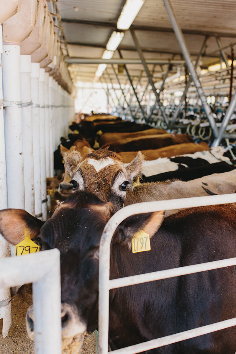 Each of their three dairies has 300-350 acres for around 500 cows. There are no barns. The cows are milked twice a day, and spend the rest of their time eating and relaxing. They’re eventually culled from the herd as well, of course, but at that point, they’ve lived a longer, happier life. As a result, the milk is better, too: “rich, buttery, and unctuous,” as Jessica describes it.